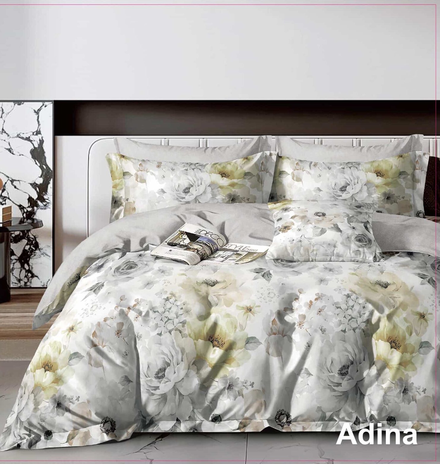 Adina is soft florals done right — not “grandma’s curtains,” more “Sunday morning and the coffee tastes better for no reason.” It’s pretty, it’s calming, and it won’t judge you if your idea of self-care is washing the duvet cover and calling it a day.