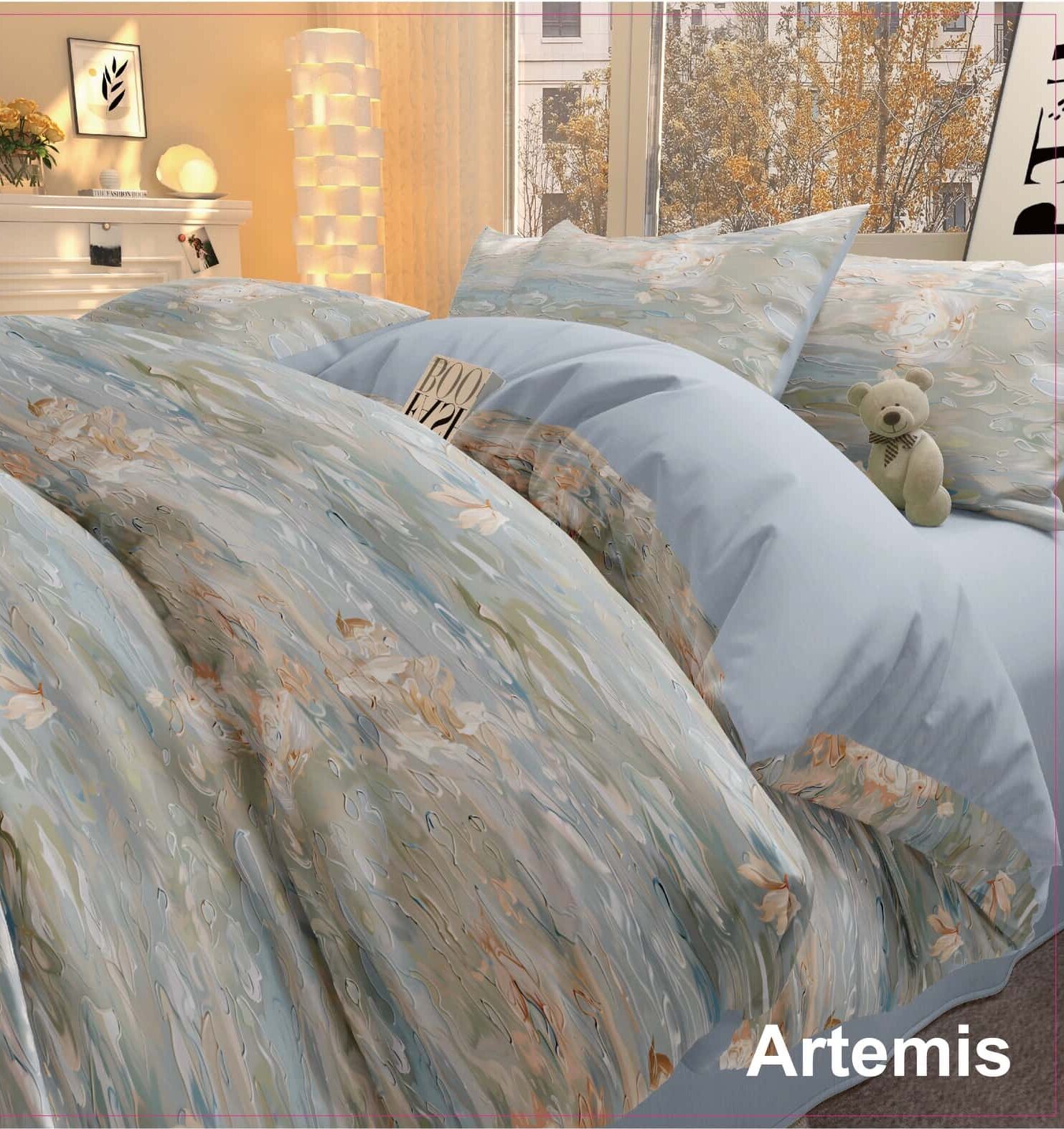 100% cotton, 210 thread count, which means breathable, crisp, and comfortable without suffocating you like those high-thread-count attention seekers. Artemis lets air move. Artemis respects boundaries.