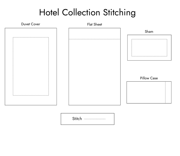 Flat sheets and pillowcases feature a single-line embroidered stitch